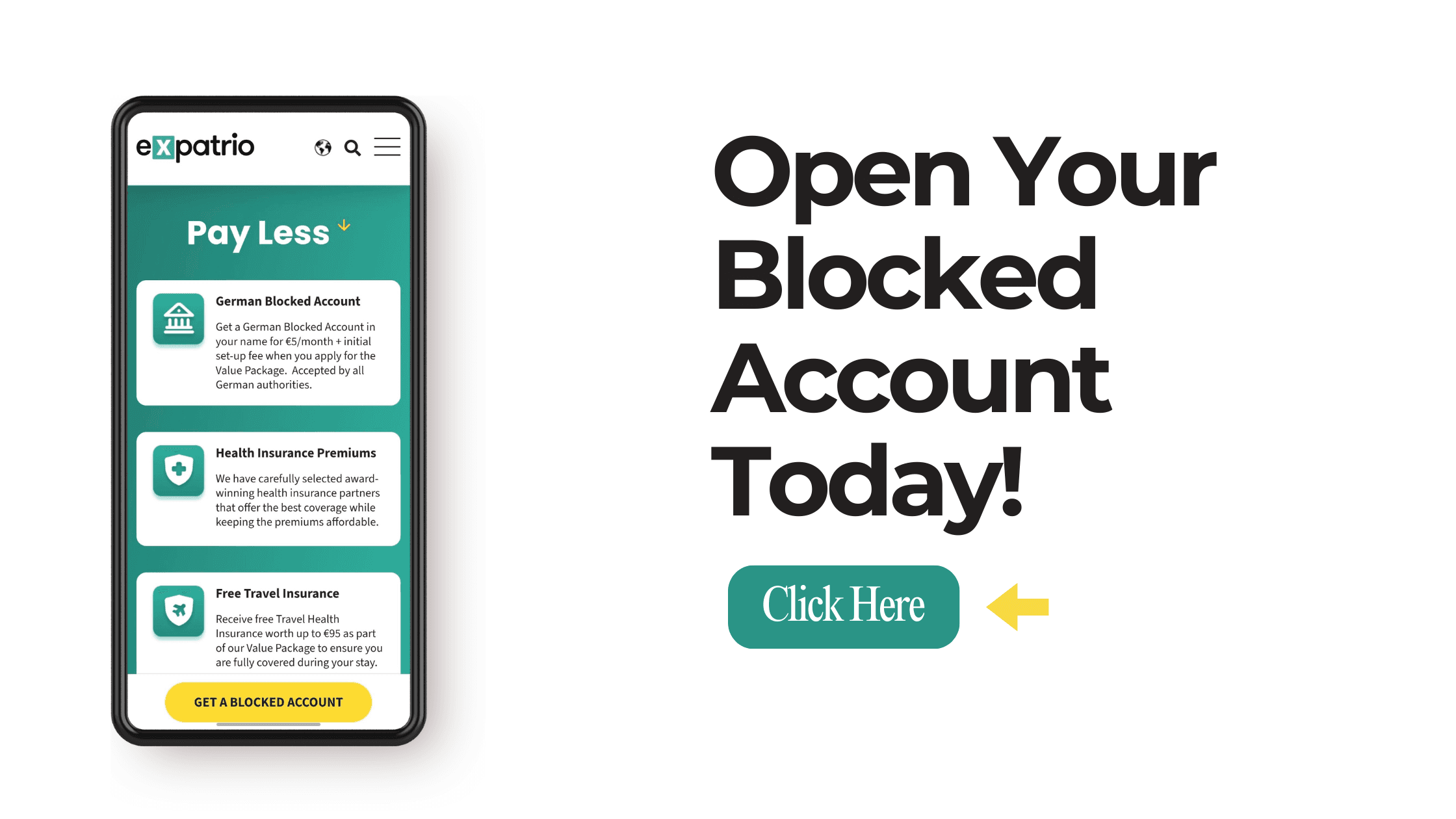 Expatrio bank account — Free digital bank account with a debit card ready to use from day one, including Apple Pay and Google Pay