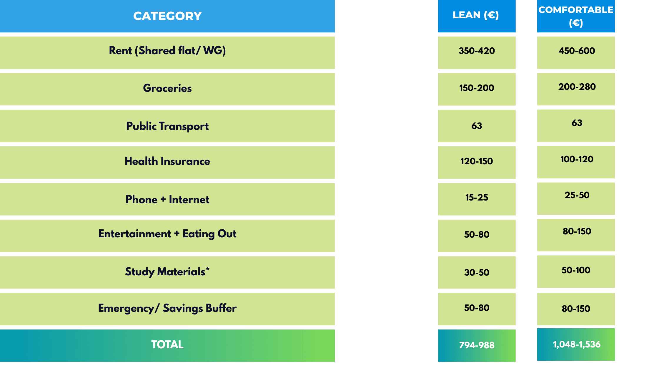 Here's the important mindset shift: this isn't "spending money." It's your total monthly income while you study. Every euro needs a job. Think of it as a salary - and budget accordingly.